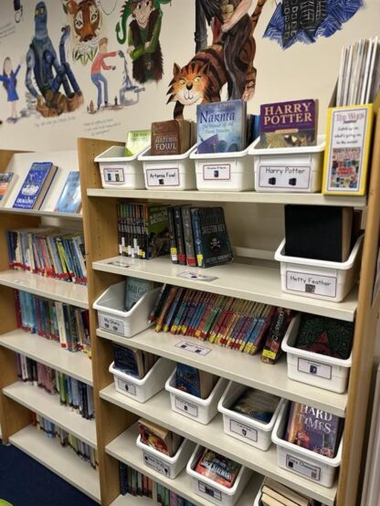 Reading materials are organised into fiction, non-fiction, and poetry blocks to align with our writing curriculum and expose children to a range of genres.