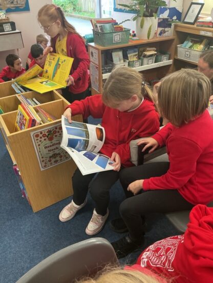 Children begin their reading journey with high-quality phonics through the Read Write Inc. programme. Once they complete this, they move on to Whole Class Shared Reading, which focuses on comprehension and fluency. In Year 2 and across KS2, Whole Class Shared Reading is used to explicitly teach reading strategies and deepen understanding.